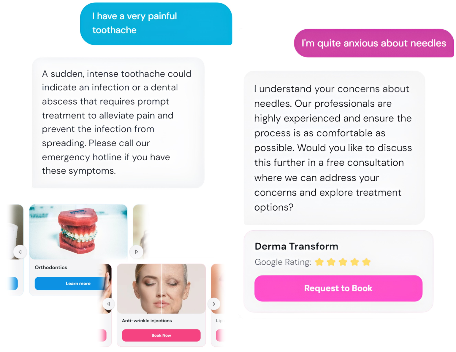 Transform patient engagement with a bespoke AI assistant, crafted to serve as both a comprehensive information resource and personalised sales aide for your clinic. Install on your website with one simple code snippet.